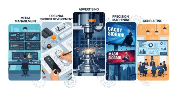 - 事業概要: メディア運営、オリジナル商品開発、精密機械加工、広告業、コンサルティング。